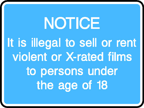 Notice It Is Illegal To Sell Or Rent Violent Or X-Rated Films To Persons Under The Age Of 18 Information Signs Signage - INFO0070